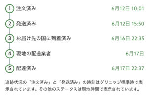 6月12日の午前10時ごろ注文→6月17日に到着しています。