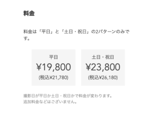 Famm出張撮影の料金は平日or土日で分かれています。