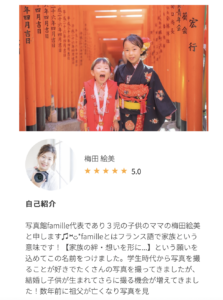 その方の簡単な経歴と、実際にそのカメラマンさんが撮られた家族写真や口コミを見ることができます🥰