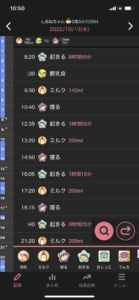 このような感じで簡単に記録&確認ができます!ぴよログじゃなくても、似たようなアプリであればOKです。